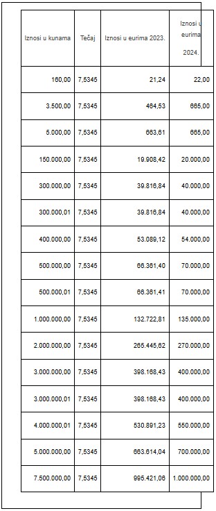 Zakonom o izmjenama i dopunama Zakona o porezu na dobit (Narodne novine, broj 114/23) iznosi iskazani u eurima primjenom službenog tečaja konverzije su izmijenjeni na način da se zaokružuju na cijele brojeve u korist poreznih obveznika.
